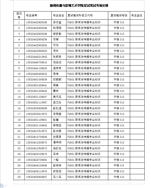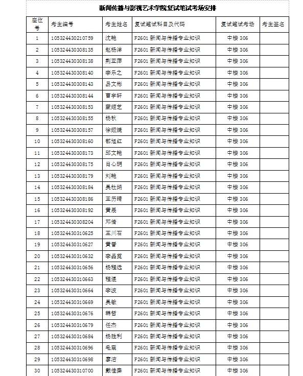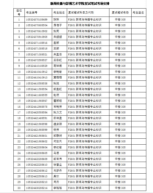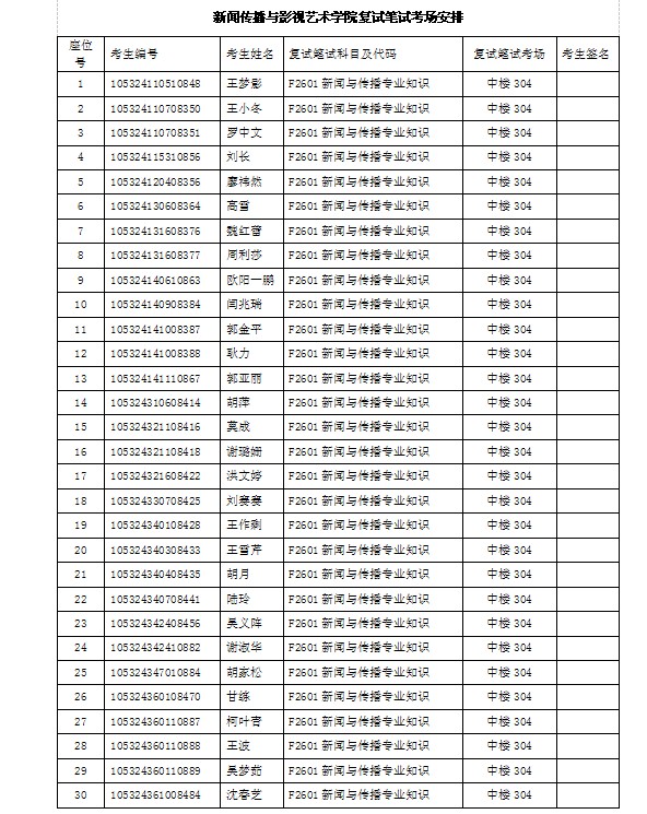 新闻传播与影视艺术学院复试笔试考场安排