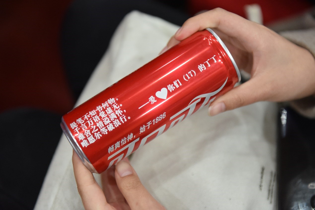会议的最后,丁杨上台做出发言《致我亲爱的你们》,并向同学们告别。她向大家分发了提前准备的礼物——定制版饮料,在瓶身上写着她送给17级全体同学的话:“提笔不知书何物,千言万语觉虚无。难舍之情溢满怀,唯愿尔等破浪行。”