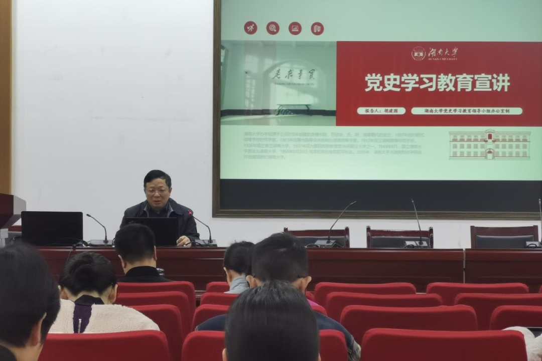 党史学习宣讲团成员胡建国作宣讲,全体在校教职工党员参加了此次学习。