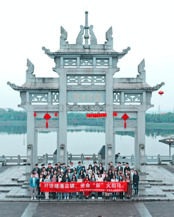 本科生新闻党支部和广播编联合党支部的60多名同学来到位于湖南省长沙市望城区的靖港古镇开展了“靖港古镇研学游”的建党一百周年主题党日活动。