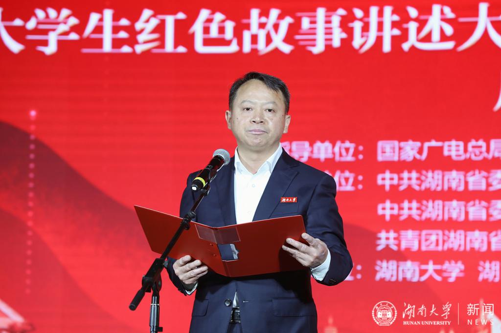 段献忠在致辞中表示,在大学生中开展党史教育,讲好红色故事,对于培养社会主义合格建设者和可靠接班人具有特别重要的意义。学校将和湖南各兄弟高校一起,精心组织好红色故事讲述大赛,全力引导广大青年大学生用心用情讲好湖南红色故事,传承好红色基因,为建设现代化新湖南、实现中华民族伟大复兴的中国梦做出应有的贡献。