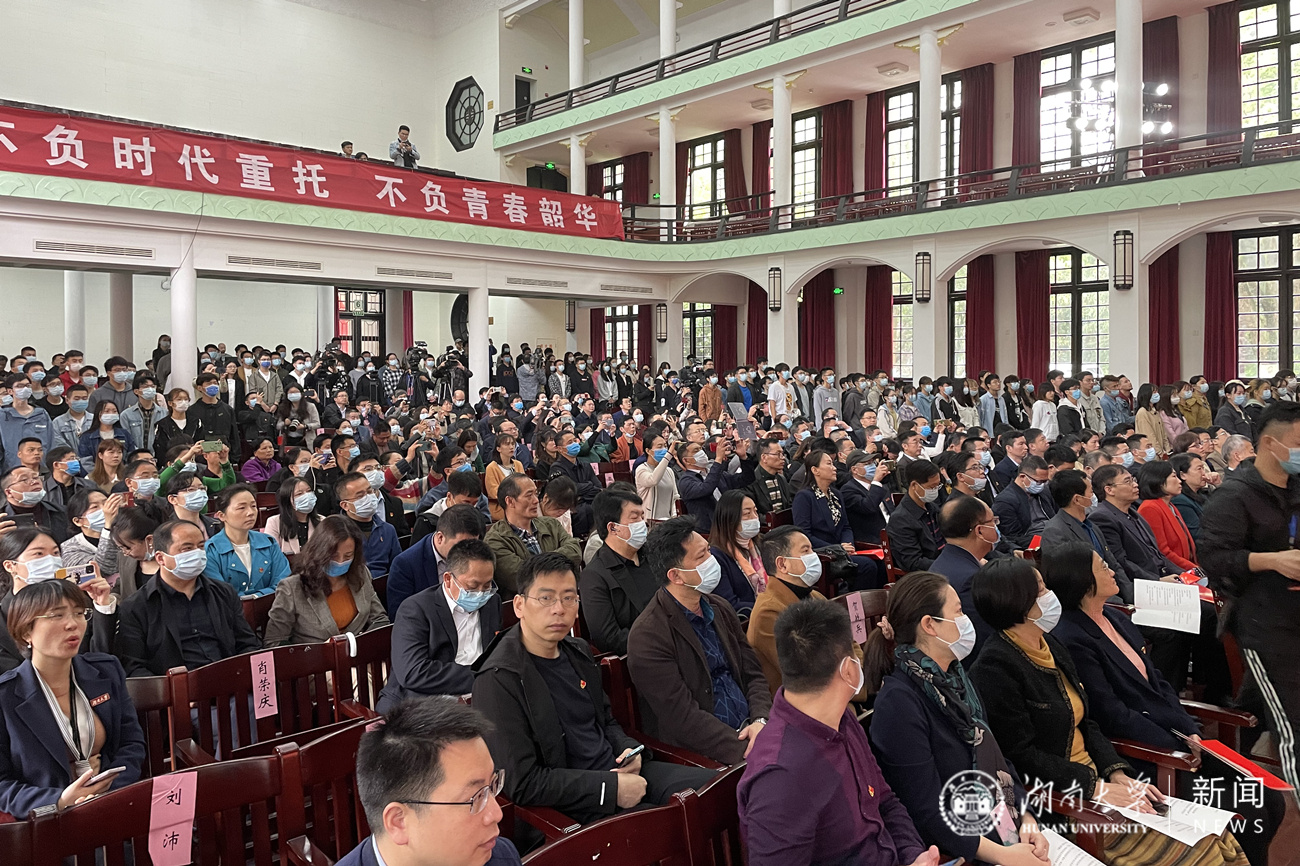 4月21日,由我校和湖南教育电视台承办的“潇湘红色故事汇·百年激荡青春潮”全省大学生红色故事讲述大赛暨百集纪录片《百年党史“潮”青年》启动式在校大礼堂举行。湖南省委常委、宣传部部长张宏森出席并讲话,湖南省副省长谢卫江出席,国家广电总局网络视听节目管理司一级巡视员董年初,以及省相关部门负责人,全省各高校分管校领导、宣传部长等共400余人参加启动仪式。校长段献忠致辞。