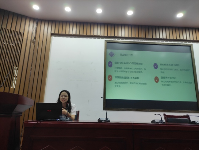 本次会议第一个环节是20级年级会、团总支成员述职。年级长任虹霖、团总支书冯子悦分别代表年级会和团总支向全年级同学进行述职汇报。接下来是由各班班长团支书进行各班团工做述职汇报。各个班的班级干部展示着这一年的工作成果,对自己这一年工作中的不足进行总结,并阐述自己对未来工作的规划。
