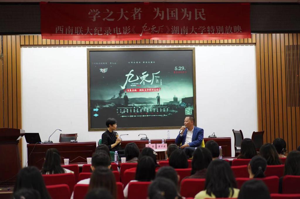 黄学建副教授请徐蓓导演给在场师生分享自己的创作经历和感想。徐蓓导演说,之所以将西南联大搬上大荧幕,是因为剧版《西南联大》的成功展示出这一题材的魅力和吸引力。相比于剧版,影片《九零后》付出了更多心血,不仅在影像和声音方面作出升级,更是从个体生命出发,见证一群从西南联大走出来的九旬老人命运的跌宕变化。徐蓓导演提到,西南联大是一个特别厚重的选题,讲好西南联大对当下的启示,是作品应当有的深度。作为纪录电影,“好看”比“深刻”还要更难。她在创作中也尝试用年轻人喜闻乐见的视角去创作,希望通过影片能够让当代九零后、零零后青年学子和耄耋老人“九零后”实现跨时空对话:“任何时代,个体都有选择的可能,自强不息,改变自我和社会的可能。”