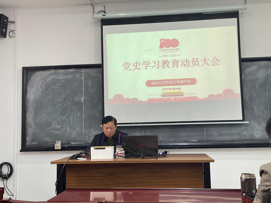 动员大会上,胡建国书记结合全国党史学习教育以及学校、学院层面相关工作部署,强调了在建党100周年的重要节点、在新时代新局势下加强学习党史的重要意义,并代表院党委对各位党员同志提出了学习要求:要落实党史学习教育活动的有效开展,要努力做到提高政治站位,聚焦目标重点、紧扣发展大局和力求保质保量。