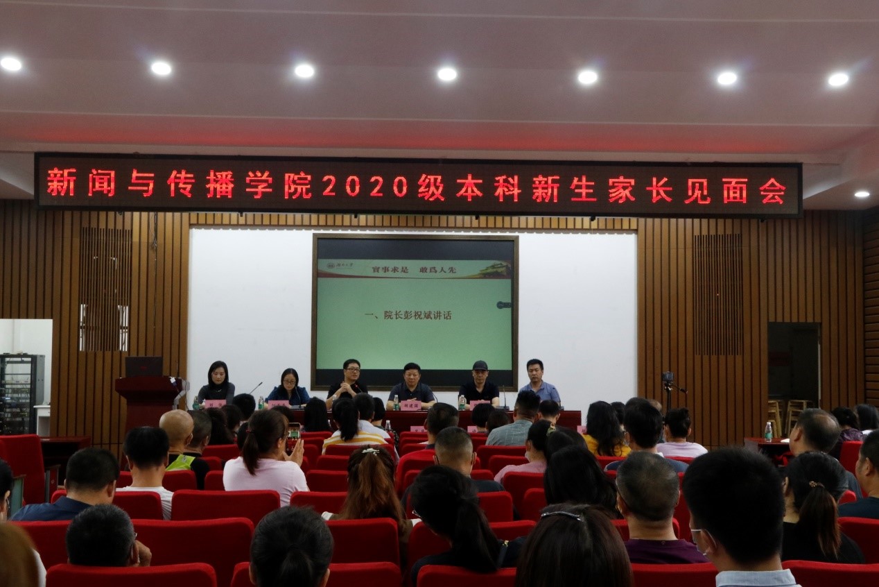 会议由新传院副院长阳美燕主持,出席会议的有院长彭祝斌、院党委书记胡建国、院长助理邓向阳以及院长助理李滨等领导班子,同时还有院学工办主任刘佳、2020级新生辅导员黄坤林和各班班主任。