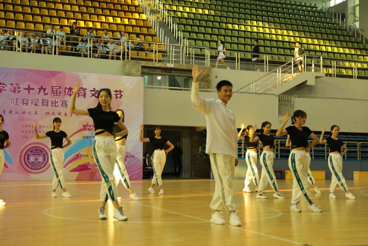 第十九届体育文化节健身操舞比赛在荫马塘体育馆内举行。本场比赛分为规定套路和自编套路两部分,共有十四个学院参赛。经过激烈的角逐,新闻传播与影视艺术学院荣获一等奖。