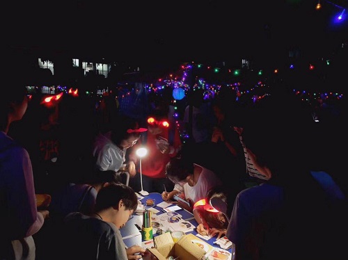 猜灯谜是从古代流传至今的一种传统民俗文娱活动形式,五彩斑斓的彩灯上挂满了各式各样的灯谜。谜面雅俗共赏有“清风拂面中秋夜”这样意境开阔的迷面,也有“丈母娘家里的米缸”这样充满生活气息的谜面,同学们在灯海中穿梭,也在猜灯谜中品味着传统文化的意蕴。