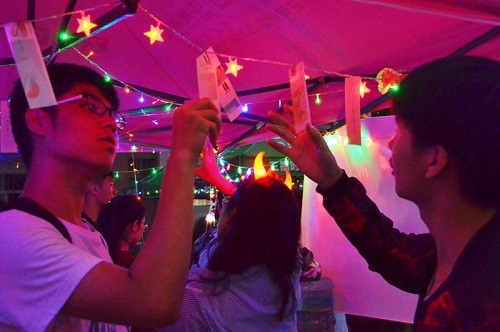 夜幕降临,在天马公寓一片闪烁的灯火之中,一张简单的小桌子旁,许多同学都写下对远方家人和朋友的思念与祝福。一张小小的明信片承载着一份份真真切切的深情。有一个同学这样写给她的父亲:“亲爱的爸爸:今天是中秋节,但是我却在异乡不能回家陪您,在中秋团圆的日子里,我们身在两地望着同一轮明月,我向您保证我会在色情文学