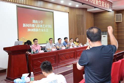 9月2日上午,新闻传播与影视艺术学院2018级新生家长会在北楼217室顺利召开。学院院长彭祝斌、党委书记胡建国、副院长向志强出席本次会议,党委副书记兼副院长程华主持会议,谢莹、莫梅锋、阳美燕三位院长助理以及18级辅导员刘佳也参与该会。