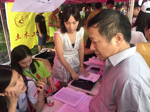 学院党委书记胡建国、副书记兼副院长程华来到迎新点,