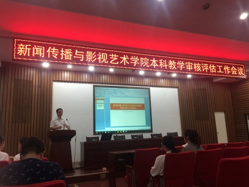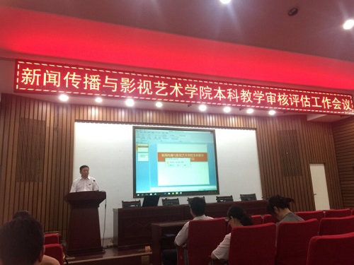 《关于推进学院审核评估教学工作安排的通知》指示,为进一步统一思想,明确工作任务和要求,6月20日下午,新闻传播与影视艺术学院在北楼217学术报告厅召开本科教学审核评估工作会议。学院党政领导及全体教职工参加会议。会议由学院党委书记胡建国主持。