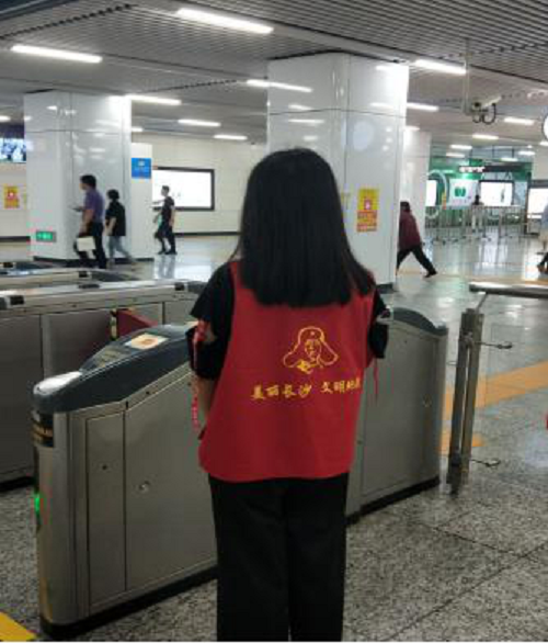 青年志愿者协会和长沙市轨道交通集团有限公司携手成立“文明长沙”地铁志愿服务团队。新闻传播与影视艺术学院积极响应,于5月5日至5月6日在五一广场地铁站安排志愿者进行志愿服务活动,主要工作有闸机引导、扶梯引导、站台岗、TVM引导。