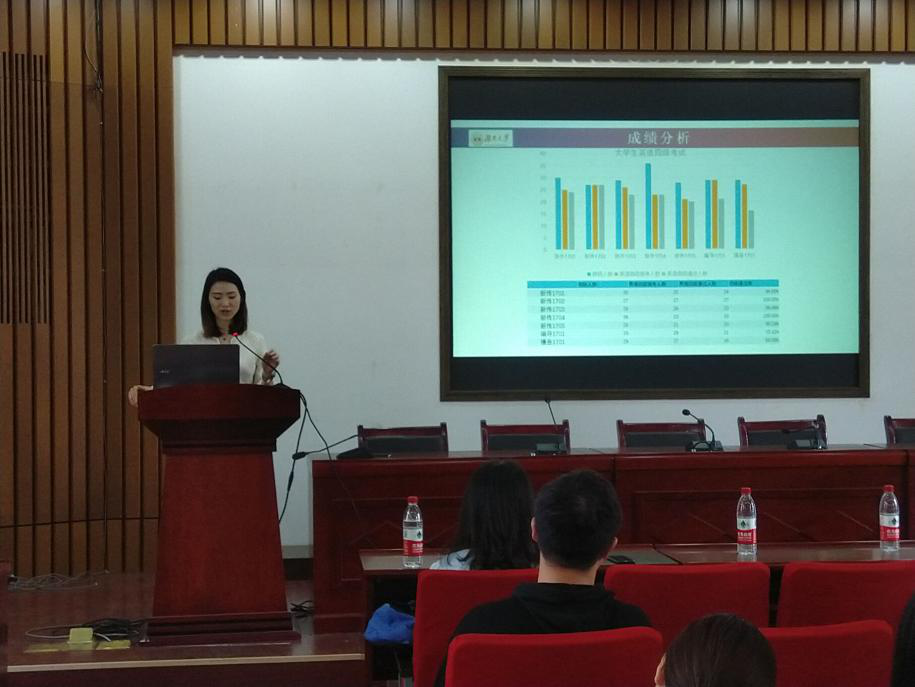 会上丁杨老师发表讲话。首先肯定了孔垂越与王晨同学的工作,并对他们的付出表达了感谢。也对17级公众号和学风建设等工作提出了新的要求。其次,针对上学期期末考试和四级考试,丁杨辅导员对17级成绩做出了分析和建议。对于四级通过率为100%的新传1702、1704班,以及在期末考试中表现突出的新传1701班提出了表扬,以激励其他班级向优秀班级看齐。最后,丁杨老师再次强调了安全的重要性。以本年级的冒充熟人诈骗以及学校两期突发事件为例,提醒同学们注意安全,并积极关爱身边的每一位同学避免类似事件再次发生。