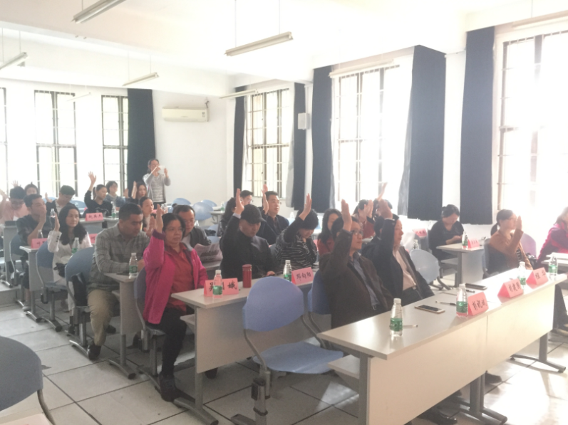 丁杨同志宣读了《选举办法(草案)》,与会全体代表表决,一致同意通过。选举设监票人2名,教工党员向鹏、潘少光作为本次选举监票人。设计票人2名,教工党员刘佳,学生党员赵英杰作为本次选举计票人。
