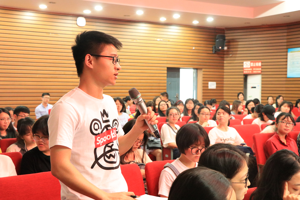 张昆教授的讲座深入浅出又幽默生动,历史故事、时事风云、前沿动态、最新调查穿插其间,给在场师生带来了许多启发和思考。互动环节师生们提问踊跃,张昆教授的精彩回答赢得了阵阵掌声。一个有趣的小插曲是,我院14级新闻专业何丹晨同学现场为张昆教授送上了《红枫》杂志2015年建院特刊,感谢他在我院新闻专业成立二十周年活动上接受自己专访,给自己激励。