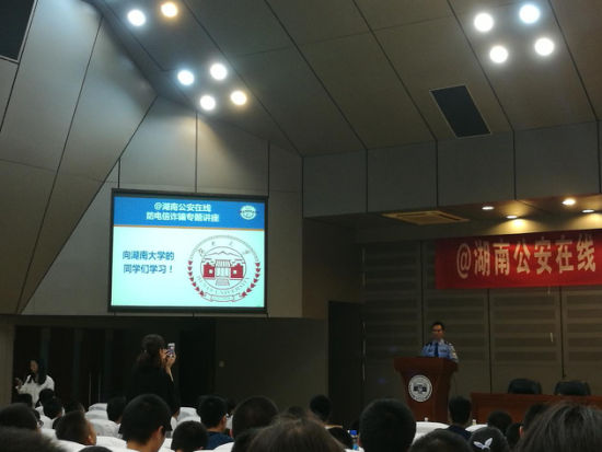 为了提高16级新生的防诈骗意识,提高对自身个人财产的保护能力,10月18日,新闻传播与影视艺术学院16级部分新生代表在逸夫楼报告厅参加了学校举办的由湖南公安在线为大家准备的防电信诈骗大型公益宣传活动。