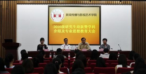 9月6日上午,新闻传播与影视艺术学院2016级研究生迎新大会暨学科介绍及专业思想教育大会在北楼217报告厅举行,大会由学院党委副书记兼副院长程华主持,学院院长彭祝斌教授、党委书记兼副院长赵智勇、副院长向志强教授以及研究生导师出席会议,2016级全体研究生参加。