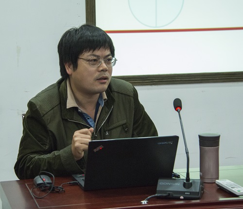 周自祥老师以“美丽‘湖大家园’的根叶与灵魂”为主题,做了创意指导的演讲。他认为,家园是第一母语。他通过符号化的解析和形与数的阐释,认为创意要表达具体含义,“把碎的含义压缩就会产生新创意。”