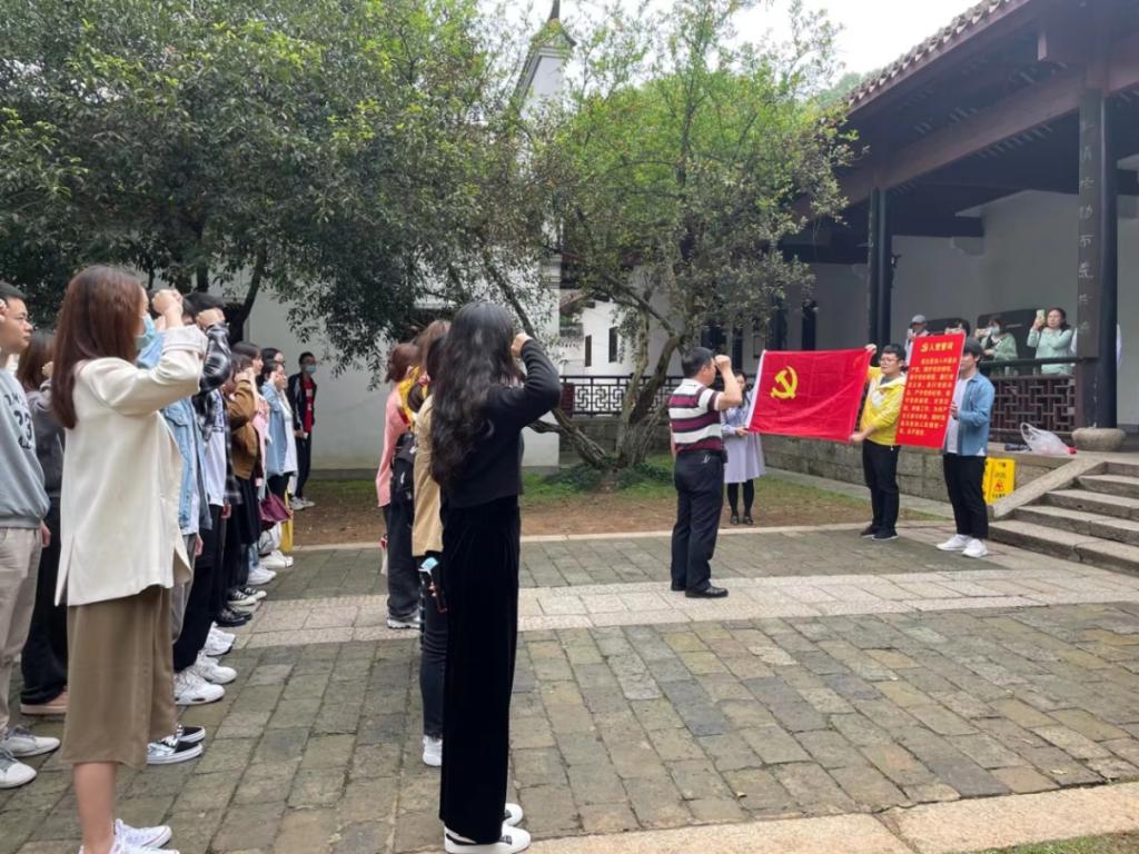走到实事求是牌匾下,胡书记带领全体预备党员开展入党宣誓仪式。预备党员们神情肃穆、面容坚毅进行了他们庄严神圣的一课,接受了入党教育的重要环节,短短一百多字的入党誓词凝聚着预备党员对党的重要承诺。