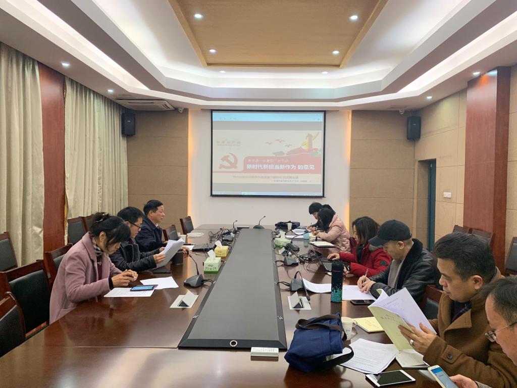 新闻传播与影视艺术学院在北楼307会议室召开党委扩大会议,学习《关于进一步激励教育部直属系统广大干部新时代新担当新作为的实施意见》(以下简称《实施意见》)。学院党委委员和全体教工党支部书记参加了会议,学院党委书记胡建国主持会议。