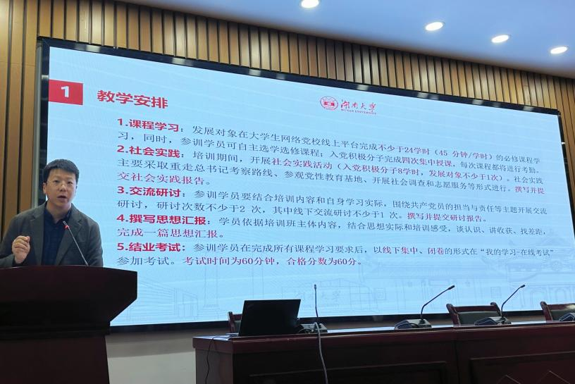 随后,李释然书记为大家详细解读了本次培训班的教学计划、学习纪律及具体要求。李释然书记强调,同学们要严格按照要求完成培训计划,认真遵守培训的各项纪律,端正入党动机,把精力投入学习当中,争取学有所获、学有所得。